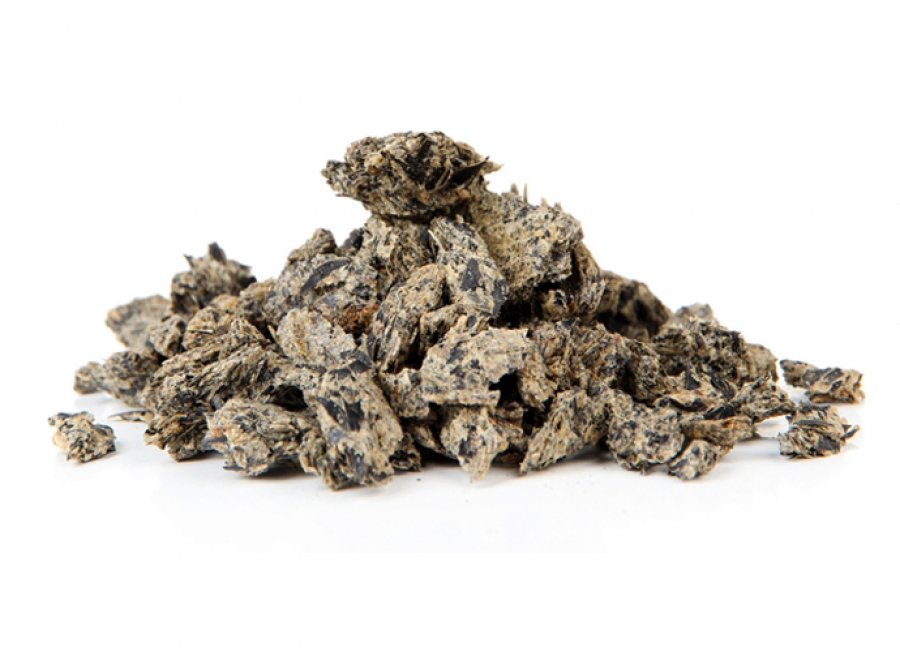 Жмых подсолнечный образуется в результате прессования семян растения с целью получения масла. Состоит он из дробленых остатков ядер подсолнуха. Этот продукт содержит около 30 % белка и до 7% жира, что позволяет говорить о нем, как о самом выгодном сельскохозяйственном корме и, что немаловажно, использование подсолнечного жмыха в кормах позволяет исключить добавление кормового масла.По количественному содержанию протеинов жмых превосходит даже зерна злаков. За счет высокой питательной и энергетической ценности отходы подсолнечника в рационе животных оказывают благоприятное воздействие на их развитие.